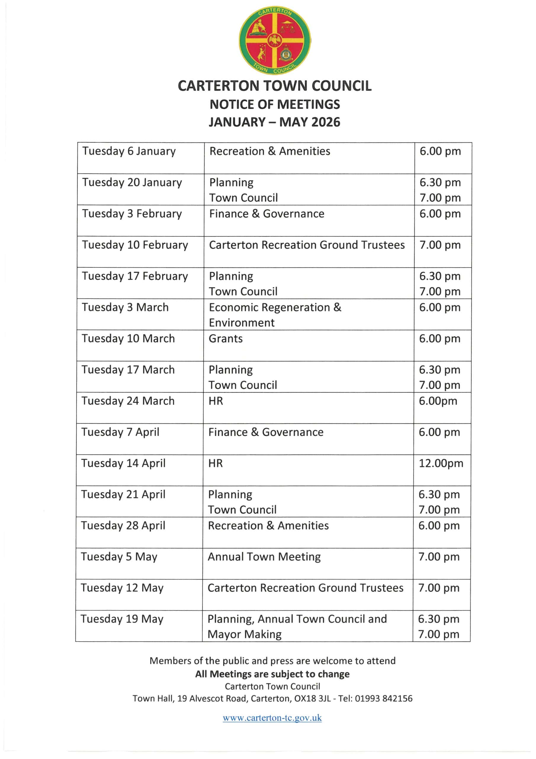 Agendas for all Council and Committee meetings are published on the website and on our noticeboard with a minimal three day notice period.