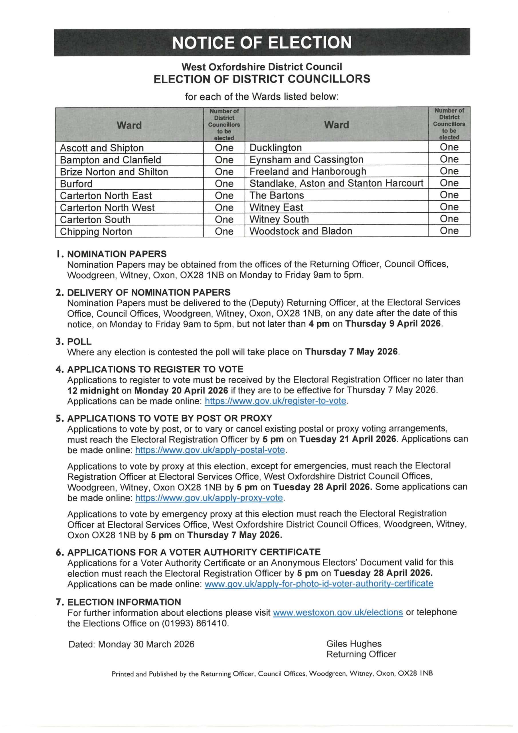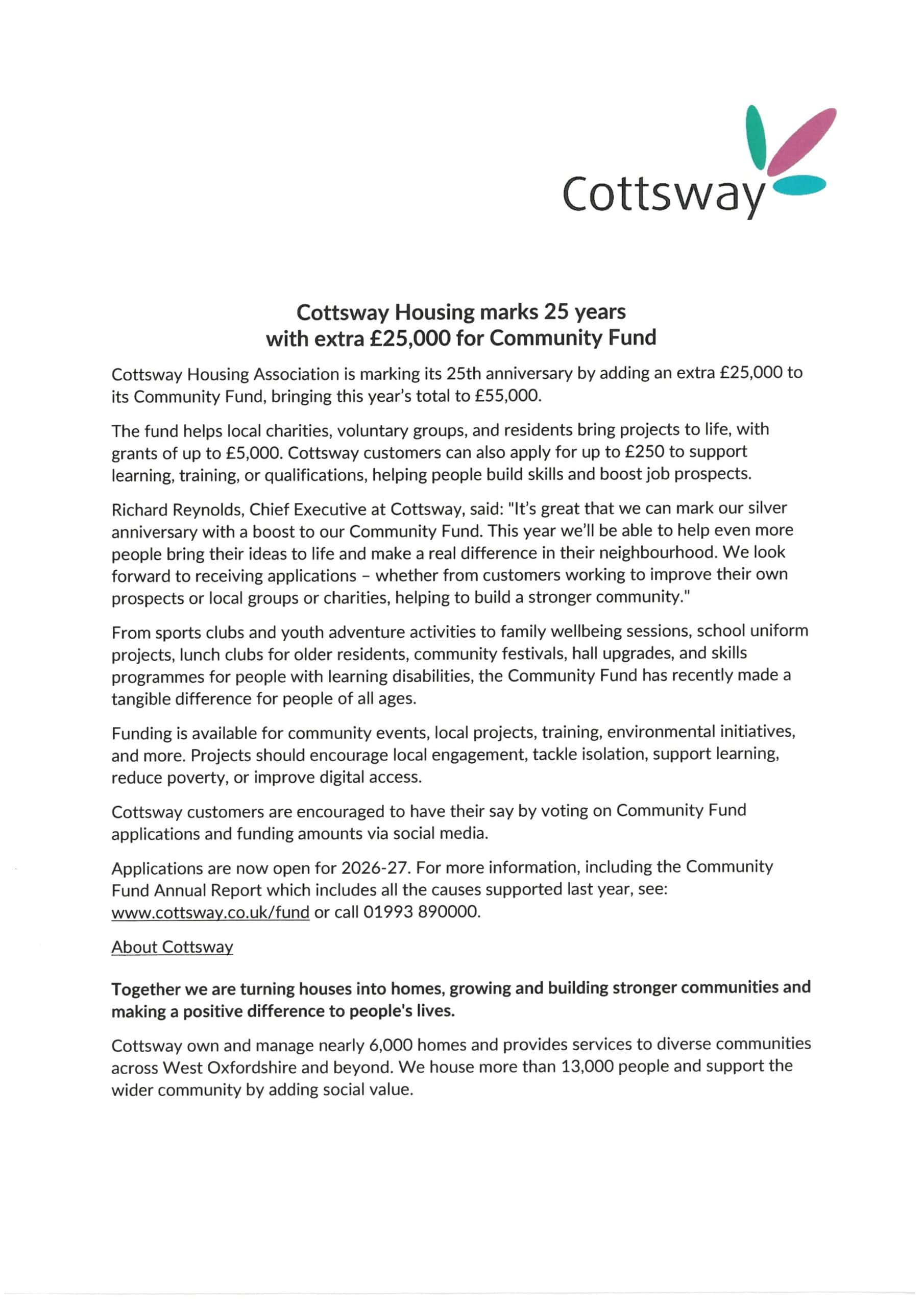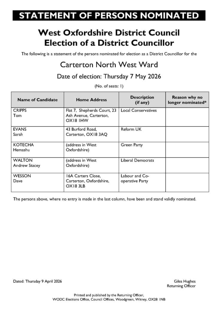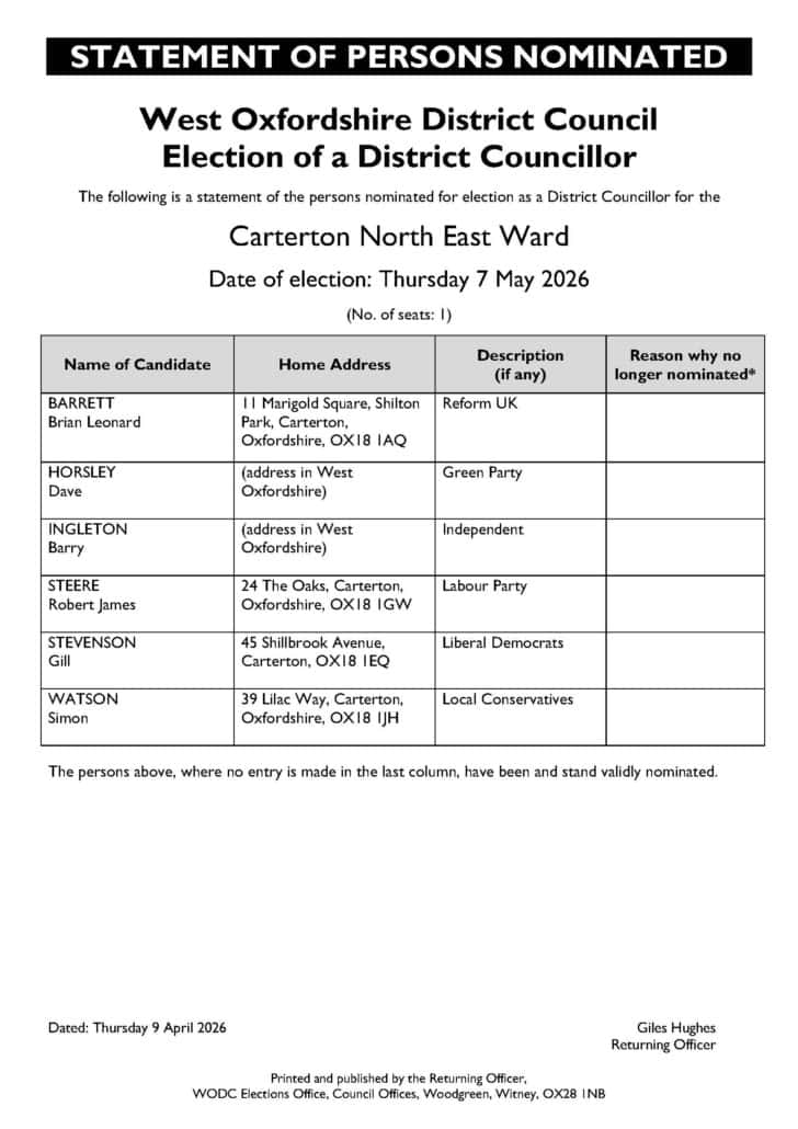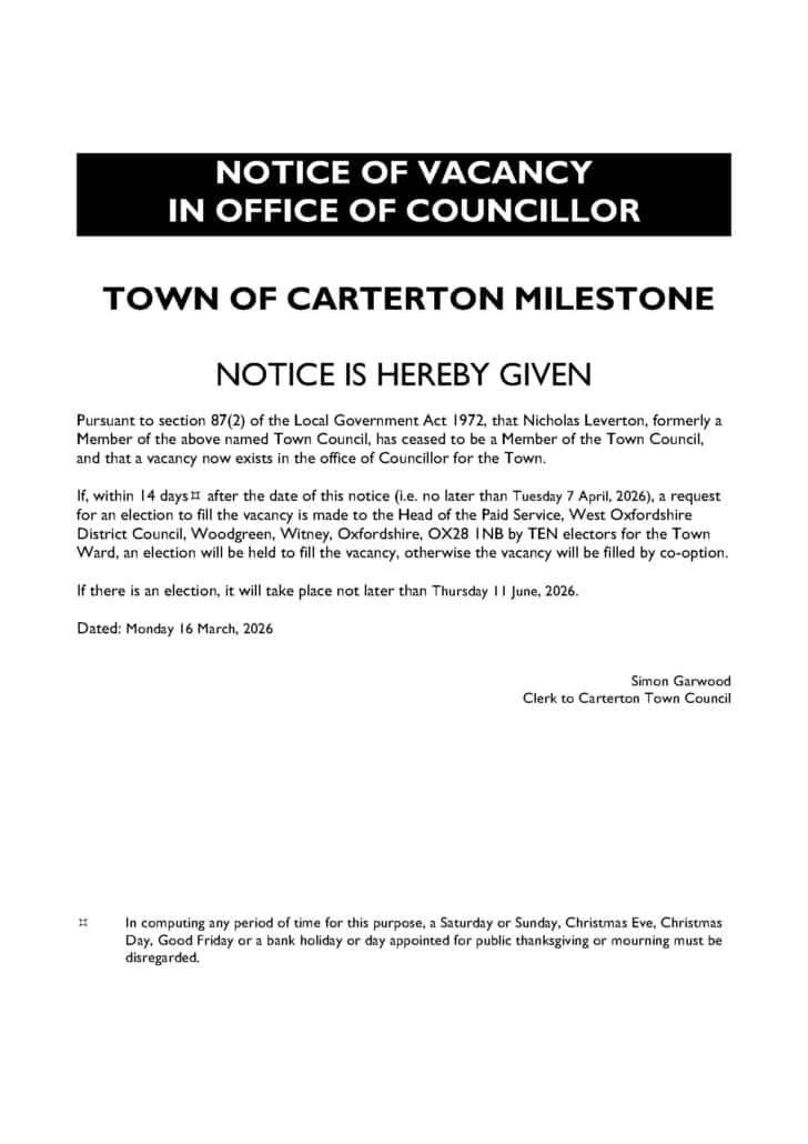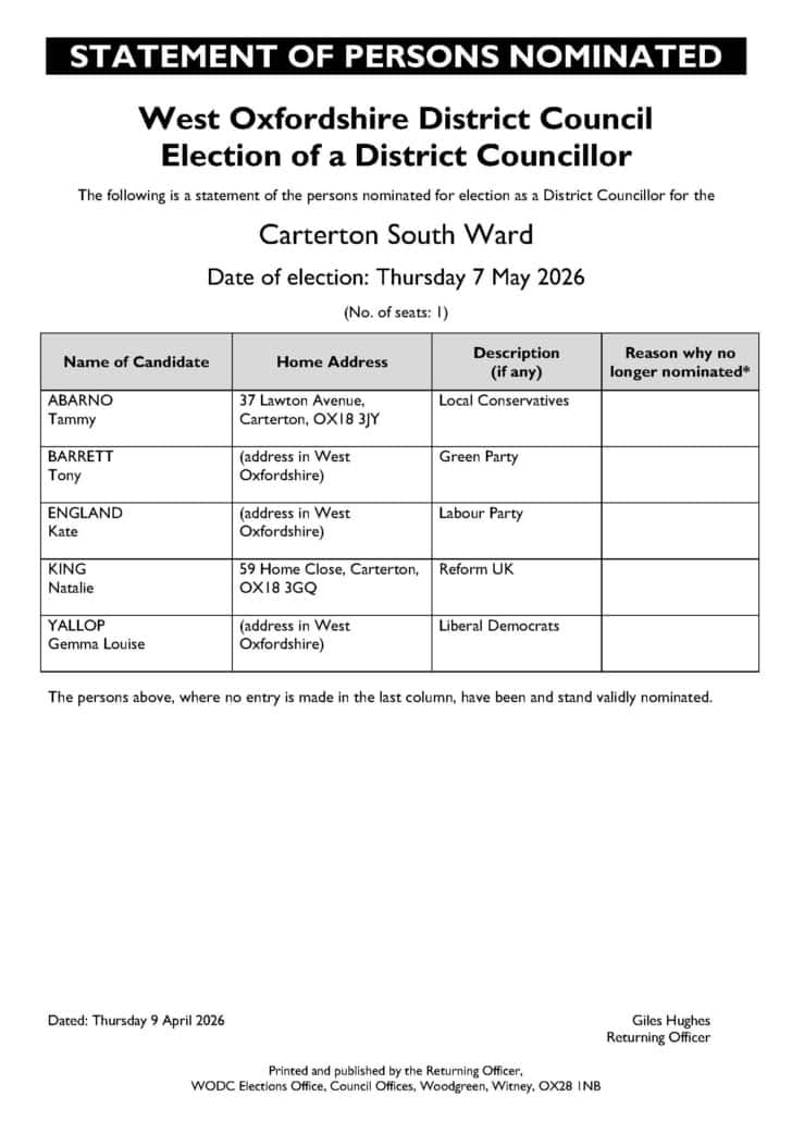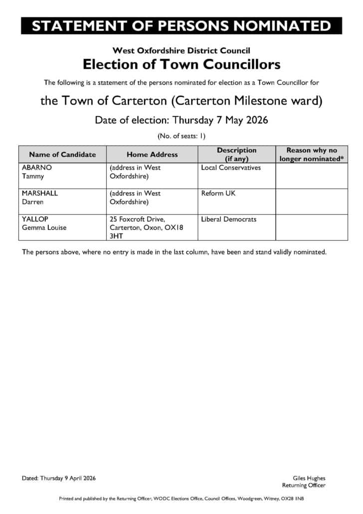 Results of the survey will be collated and a report will be issued at the Annual Town Meeting, which will take place on 5th May 2026, at 7pm, The Family Centre, The Allendale, Carterton, OX18 3AA