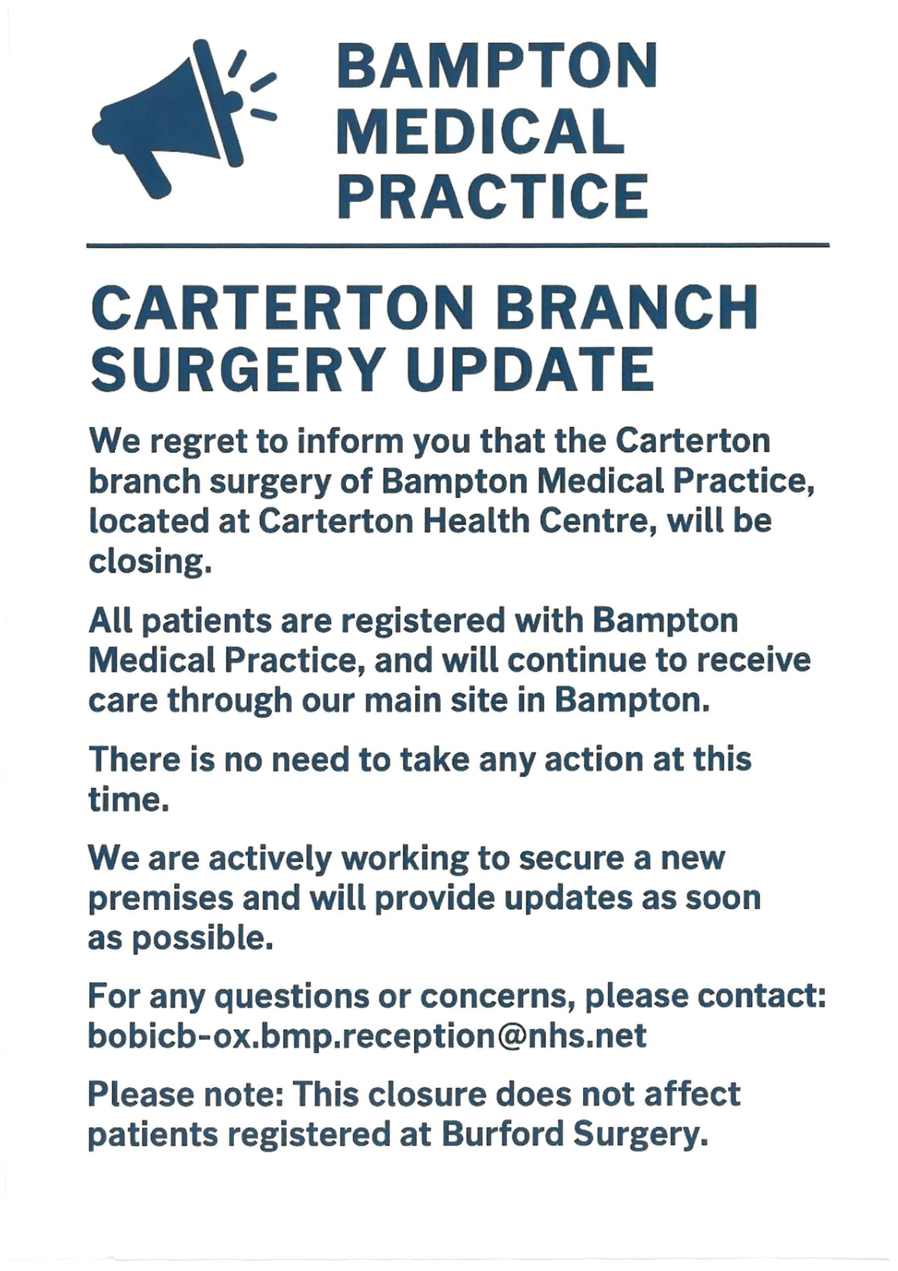 BAMPTON MEDICAL PRACTICE – CARTERTON BRANCH SURGERY UPDATE